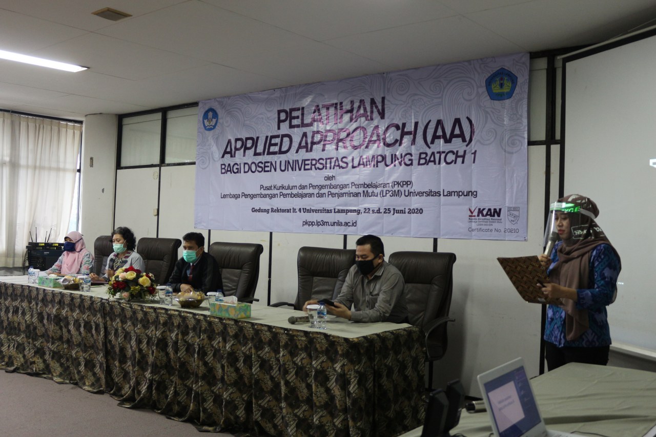 Kegiatan Pelatihan Applied Approach ini merupakan pelatihan tahap pertama yang diadakan oleh Pusat Kurikulum dan Pengembangan Pembelajaran (PKPP) LP3M Universitas Lampung. Dr. M. Setyorini, M.S, Ketua PKPP, menyatakan bahwa Program Applied Approach (AA) dirancang sebagai program lanjutan dari program PEKERTI. Selaras PERMENDIKBUD RI No 3 tahun 2020 tentang Standar Nasional Pendidikan TINGGI dan kebijakan Merdeka Belajar-Kampus Merdeka. Materi pelatihan AA Tahun 2020 ini berupaya melatih dosen memiliki wawasan mendalam untuk pembelajaran dalam Kampus Merdeka. Pembelajaran yang memberikan tantangan dan kesempatan untuk pengembangan kreativitas, kapasitas, kepribadian, kebutuhan mahasiswa, serta mengembangkan kemandirian dalam mencari dan menemukan pengetahuan melalui permasalahan riil dan dinamika lapangan seperti interaksi social, kolaborasi, dan manajemen diri. Dengan demikian diharapkan para dosen yang telah mengikuti AA, mampu melaksanakan transformasi pembelajaran yang kreatif dan inovatif, untuk bisa membekali dan menyiapkan lulusan Unila menjadi generasi unggul, menguasai berbagai keilmuan yang berguna untuk memasuki dunia kerja.